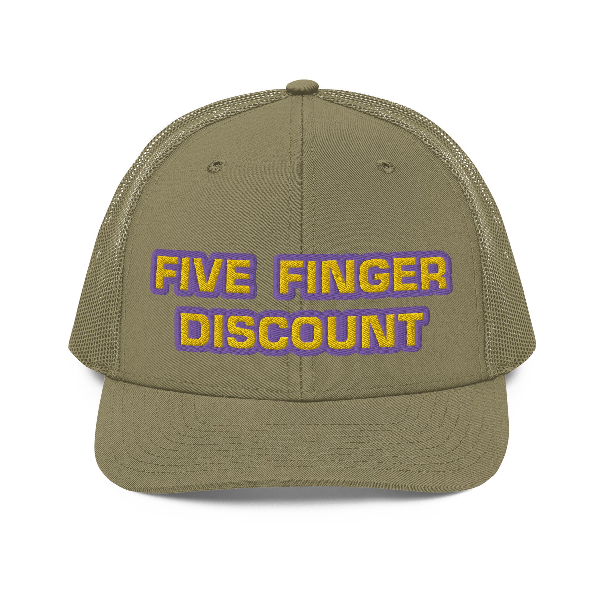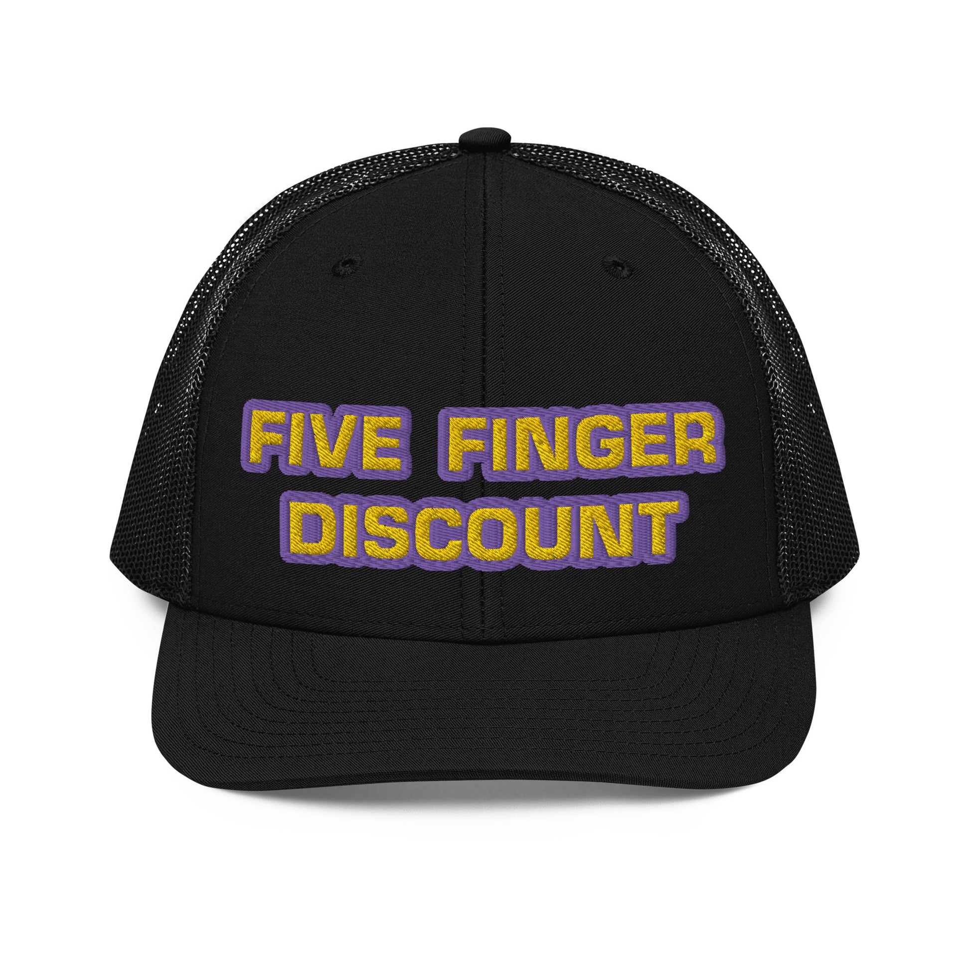 Five Finger Discount Gold & Purple Embroidered Trucker Hat