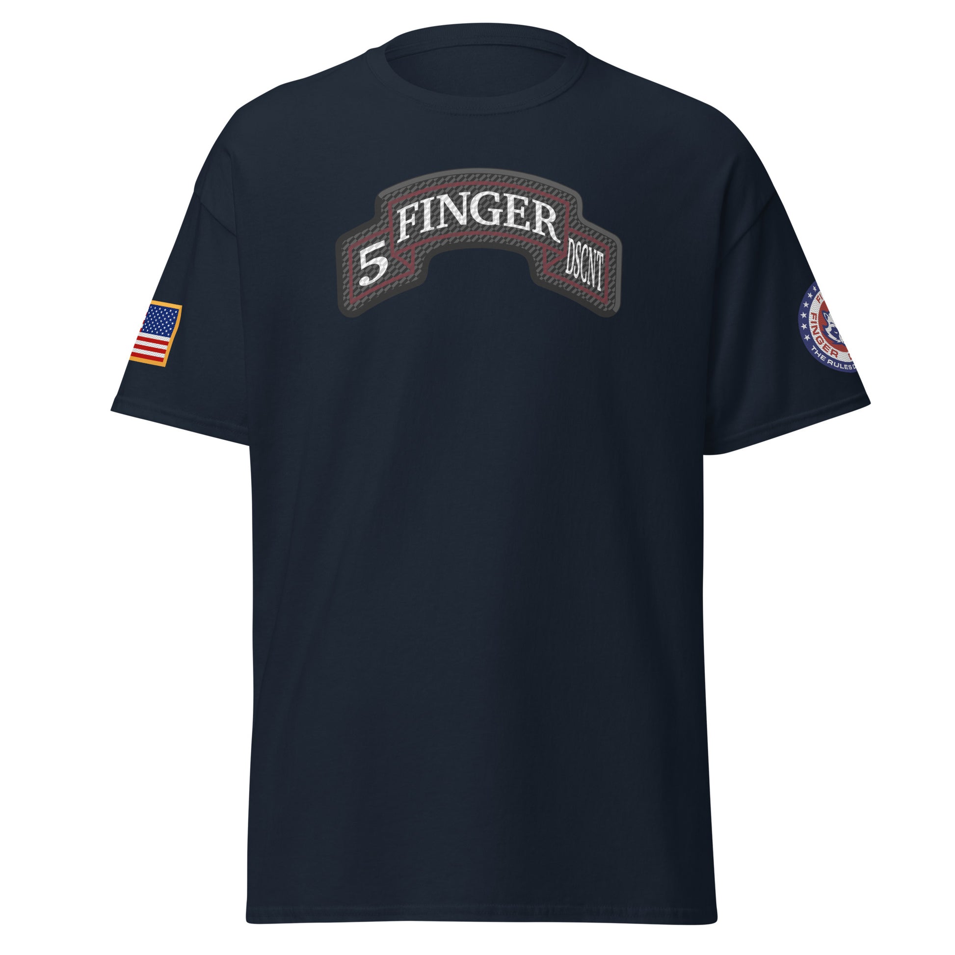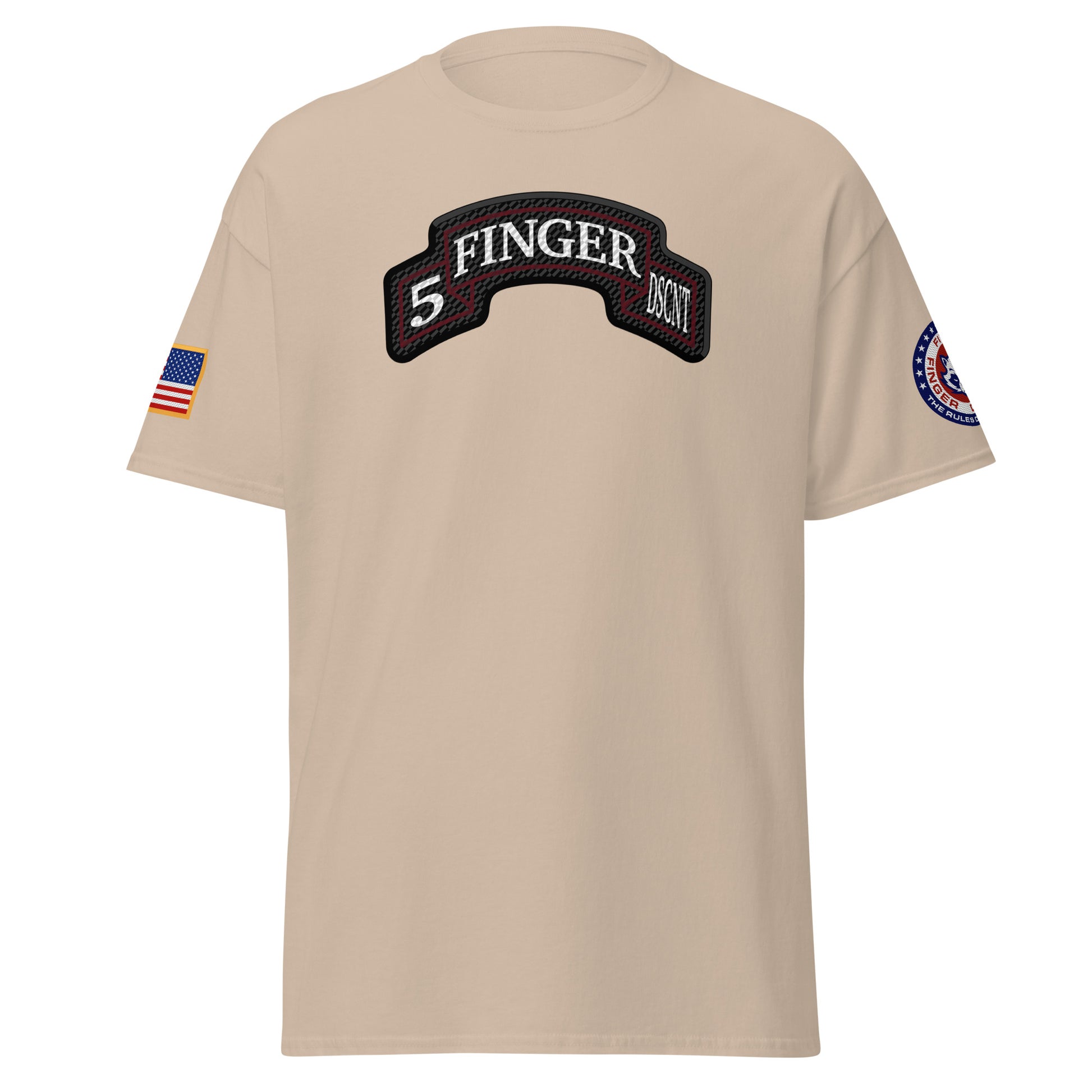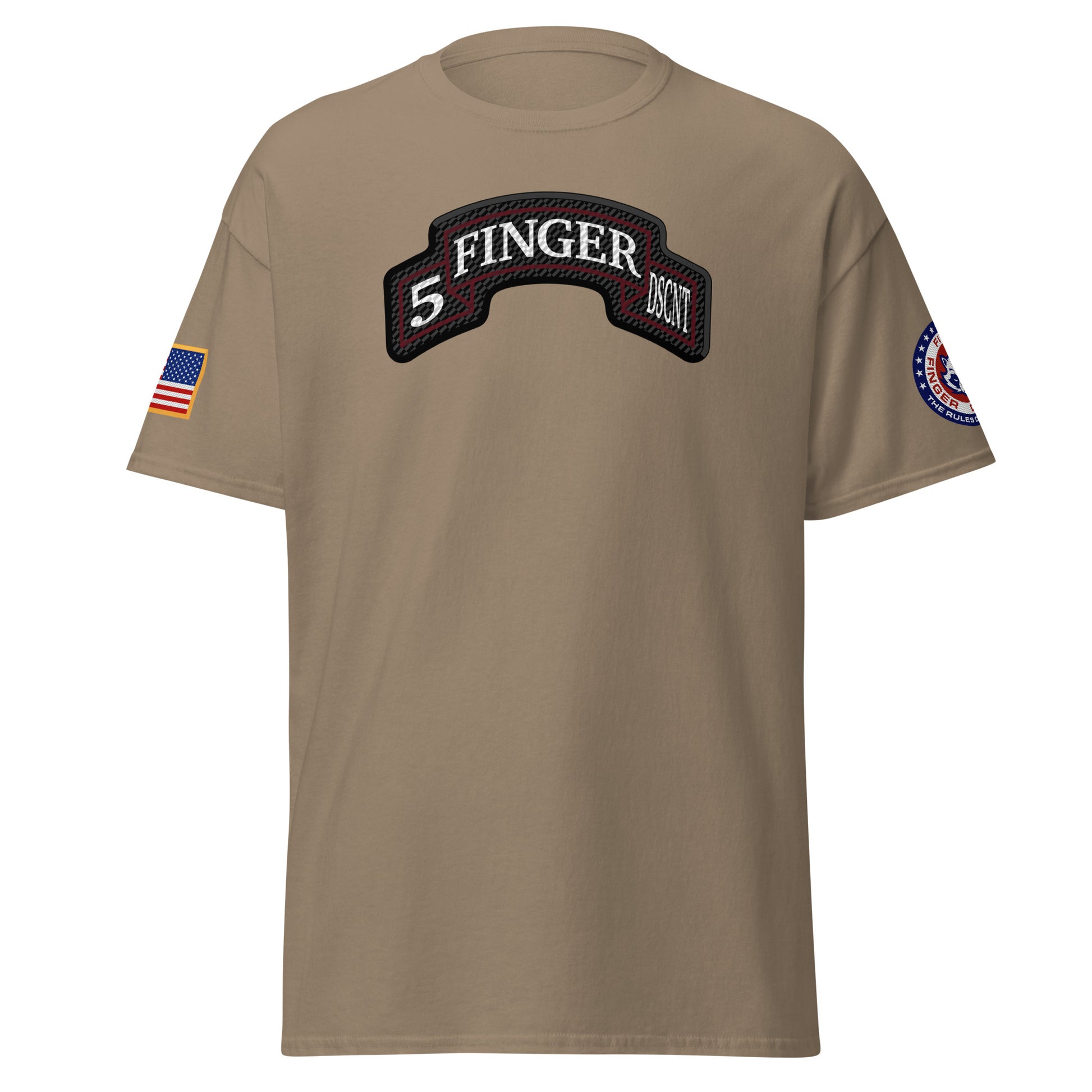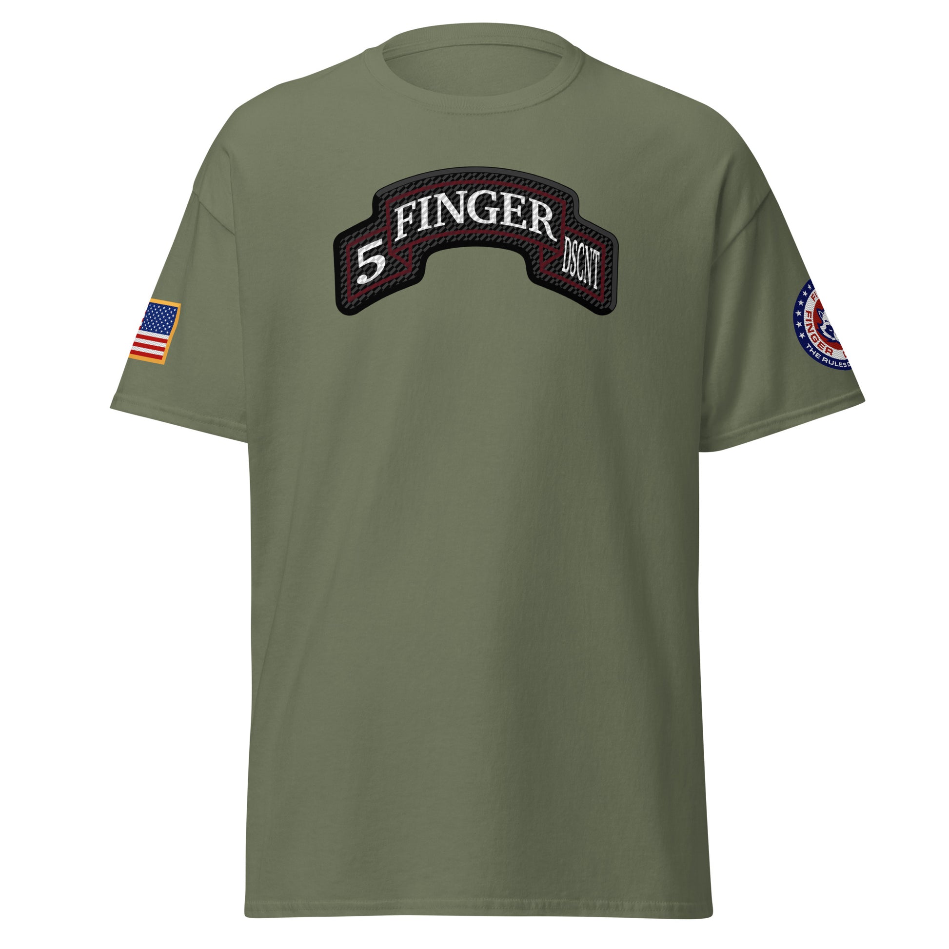 Rangers Lead The Way! Based on the famed Ranger Regiment Scroll shoulder sleeve insignia patch, with a Five Finger Discount twist. Featuring the American flag on the right shoulder and Five Finger Discount branding on the left shoulder.