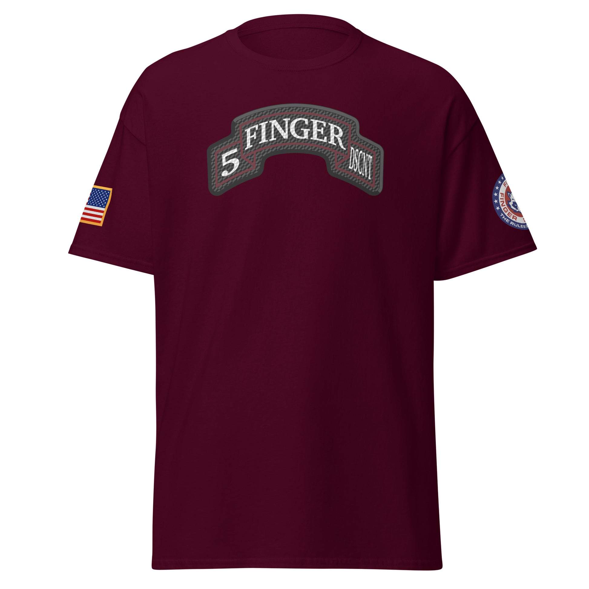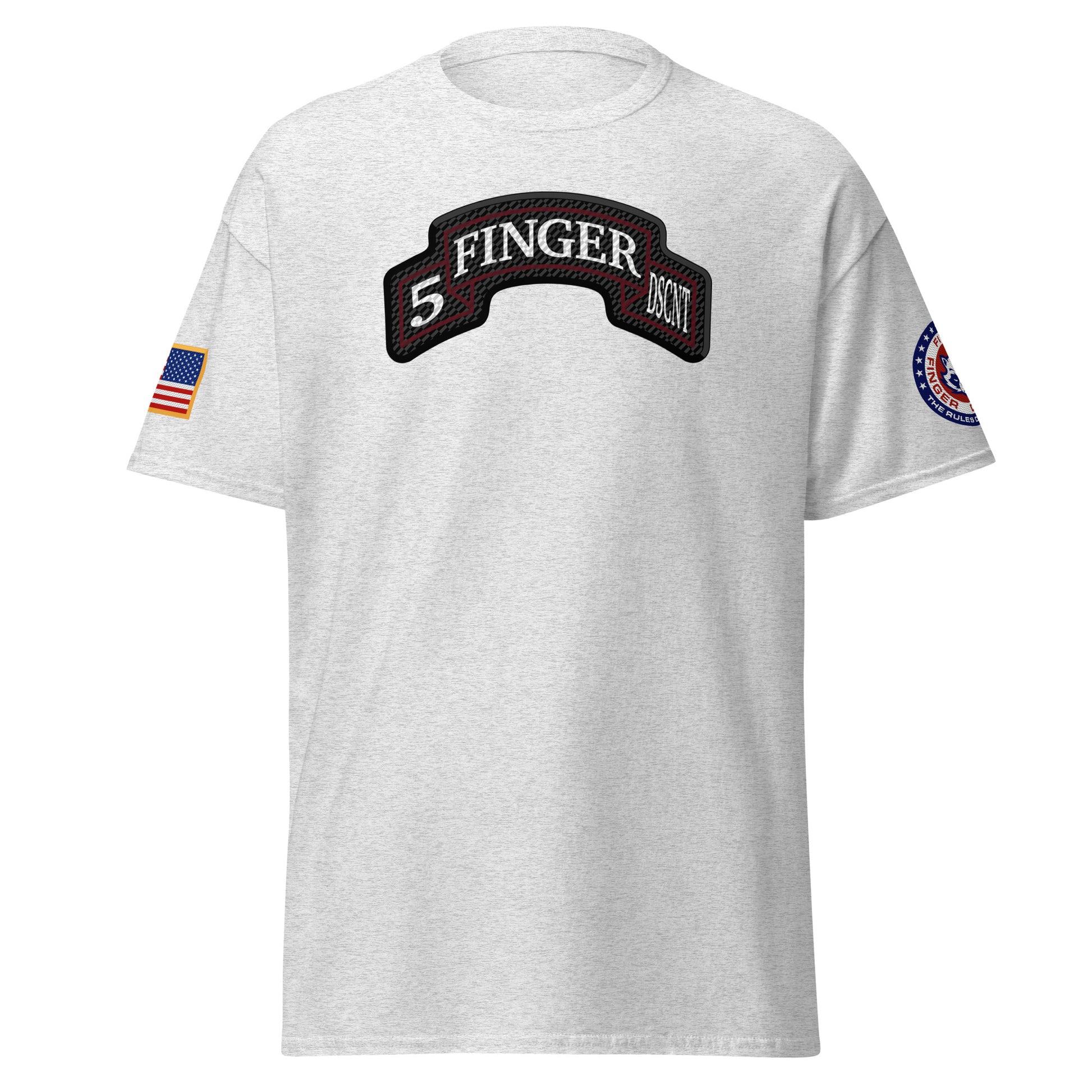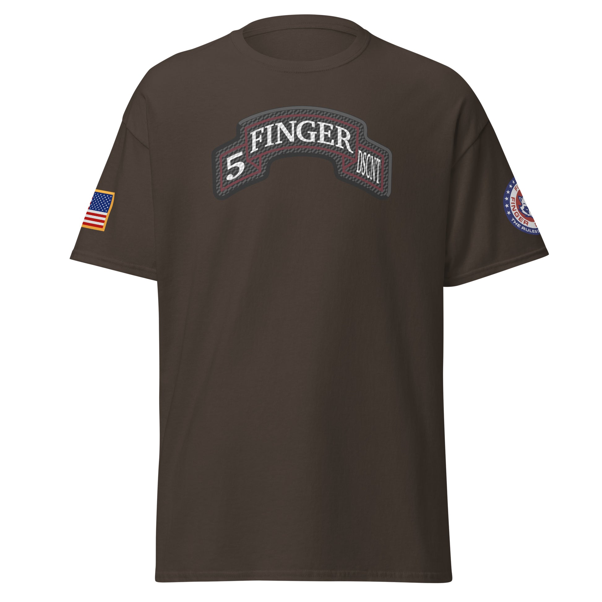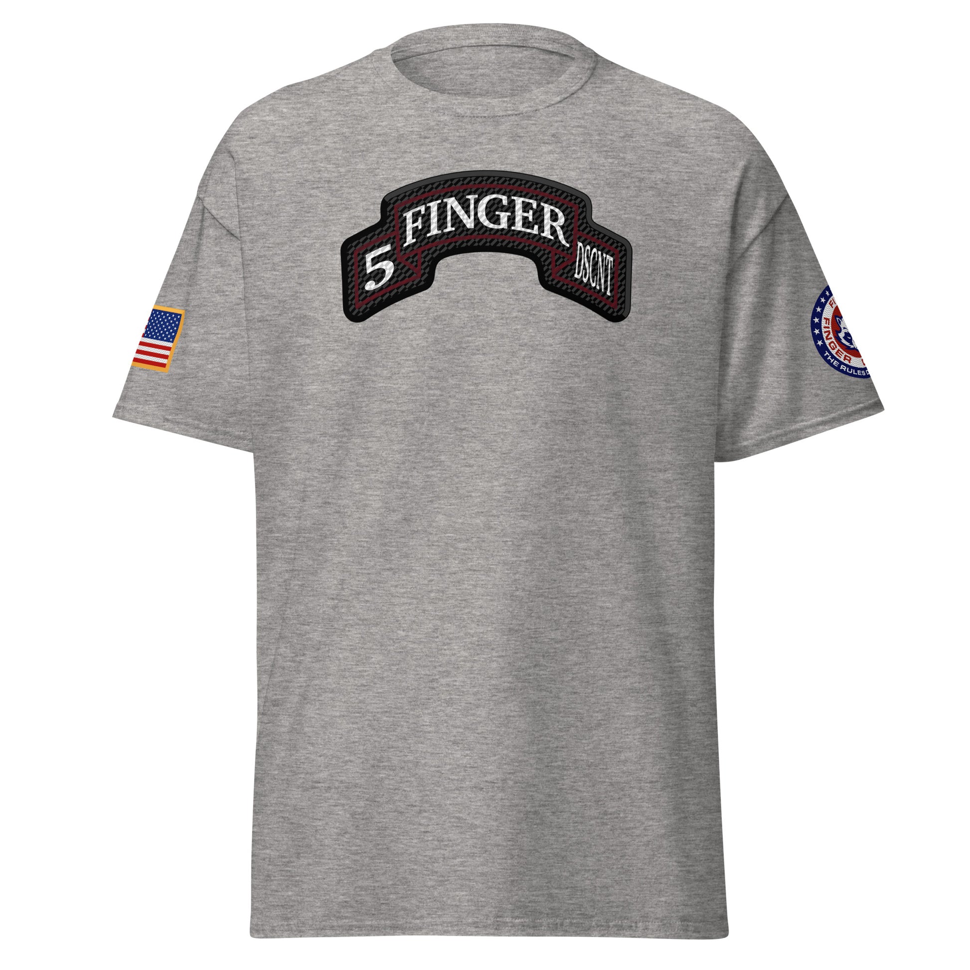 Rangers Lead The Way! Based on the famed Ranger Regiment Scroll shoulder sleeve insignia patch, with a Five Finger Discount twist. Featuring the American flag on the right shoulder and Five Finger Discount branding on the left shoulder.