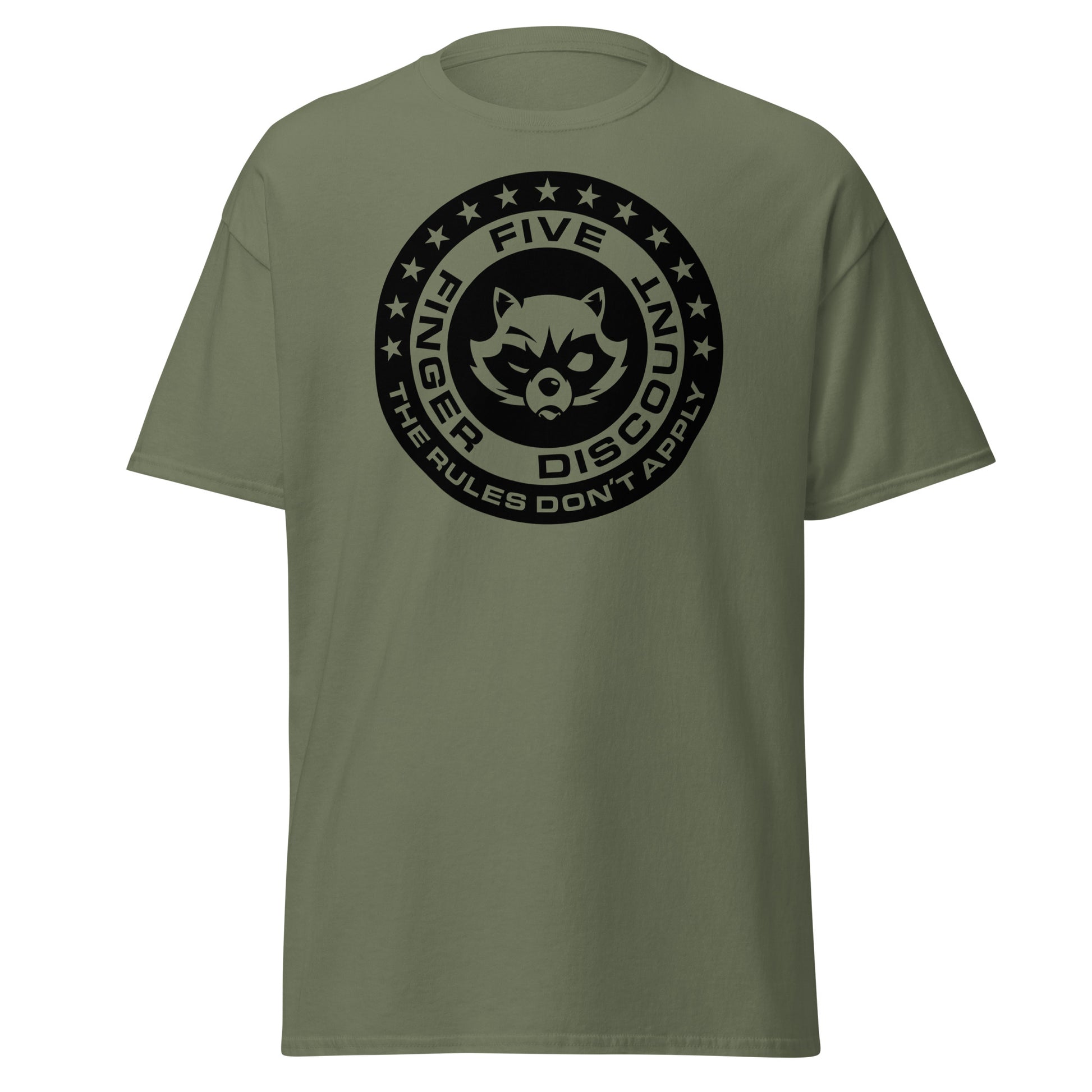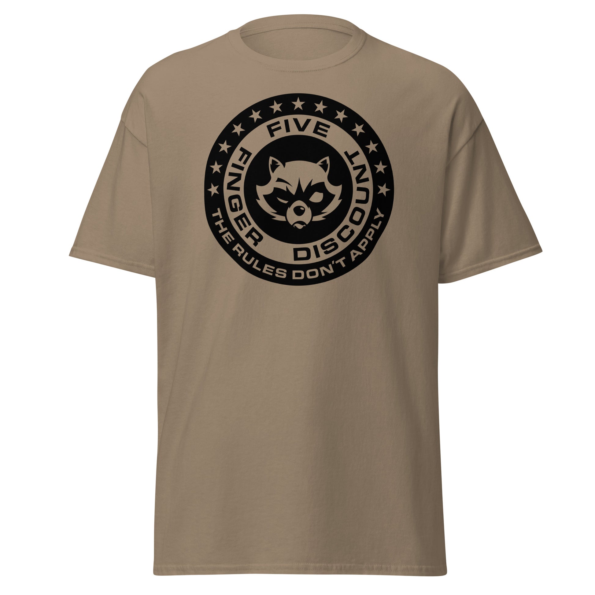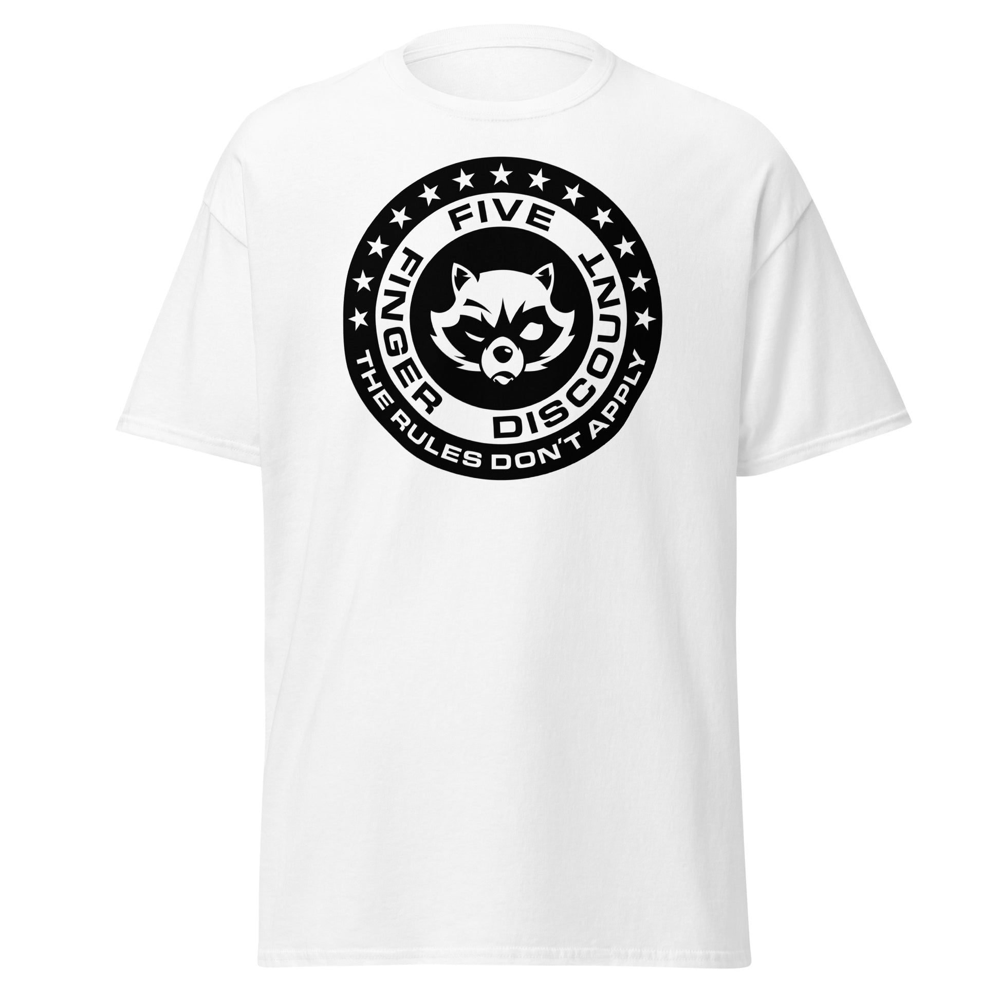 Five Finger Discount’s very “own” design, this t-shirt is emblazoned with our logo in black as well as being used as the outside label print on the back.