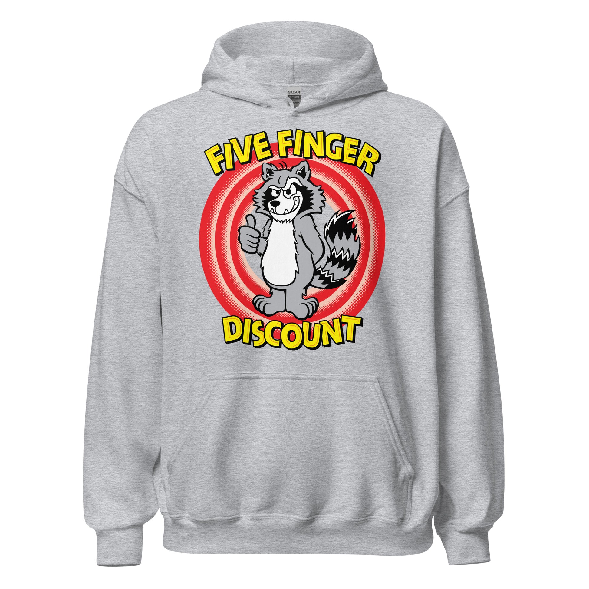 That's All Folks! Inspired by skateboard graphics from the 80’s and 90’s, this hoodie is emblazoned across the front with our Rucco Thumbs Up graphic as well as the following phrase