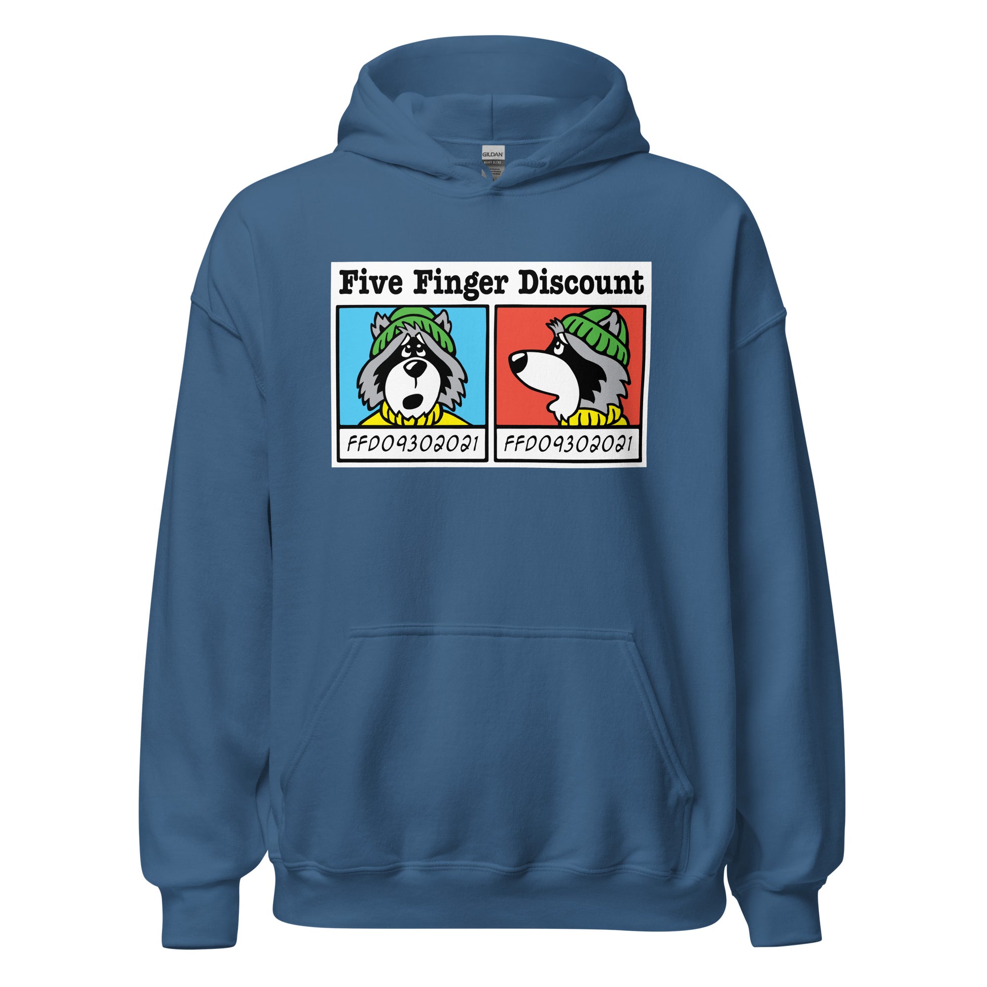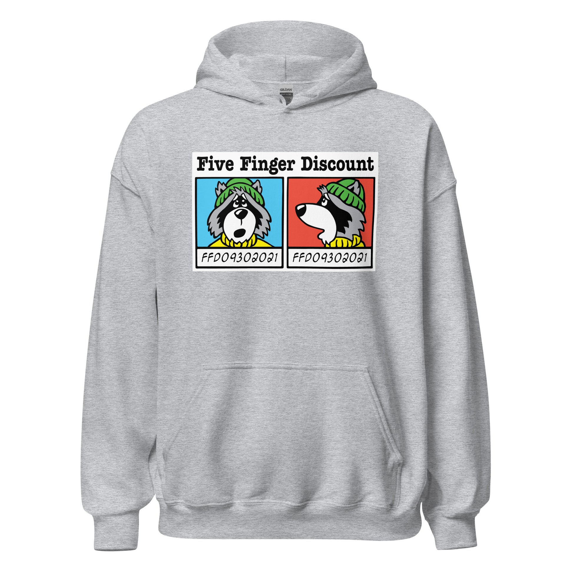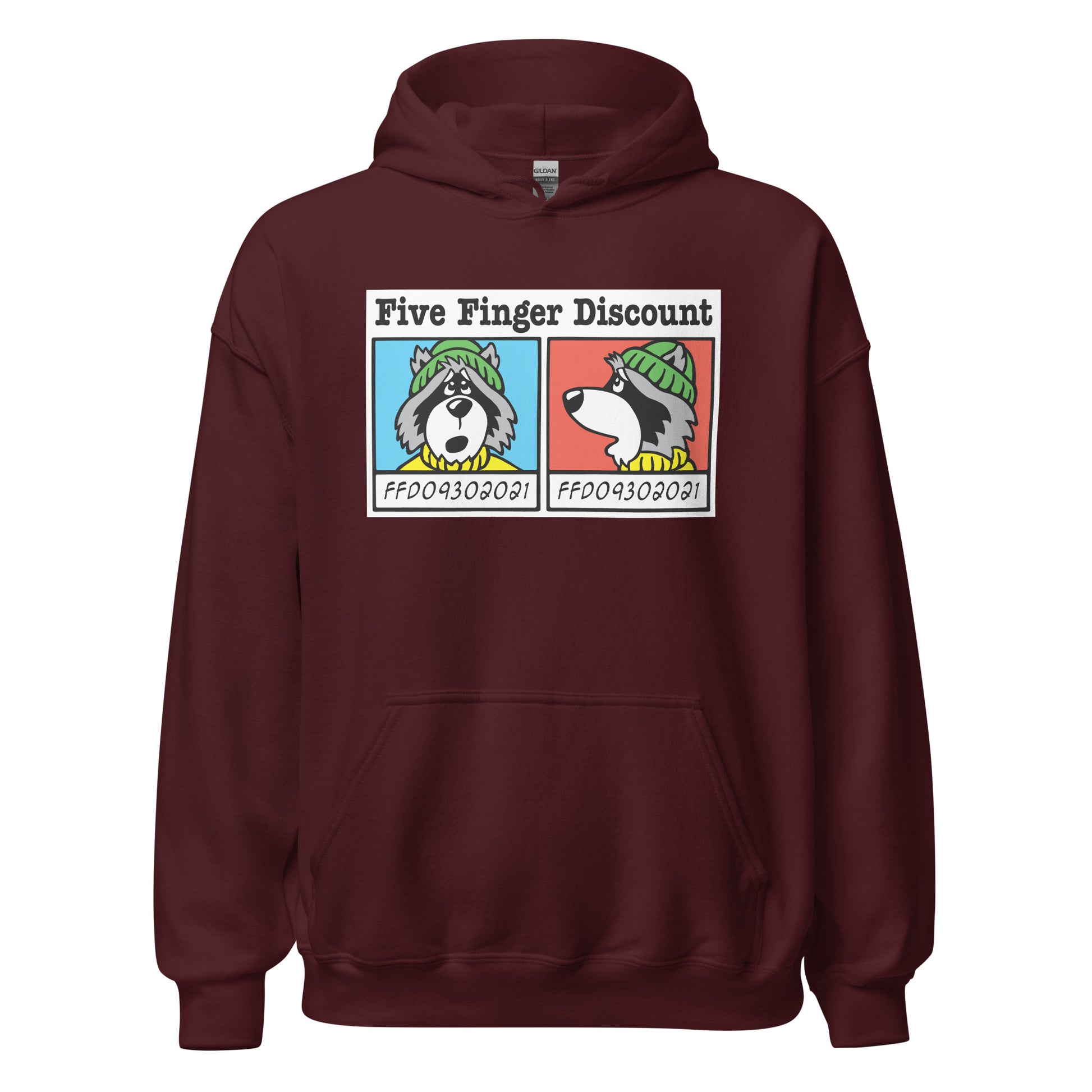 Inspired by skateboard graphics from the 80’s and 90’s, this hoodie is emblazoned across the front with our Rucco Mug Shot graphic as well as the following phrase