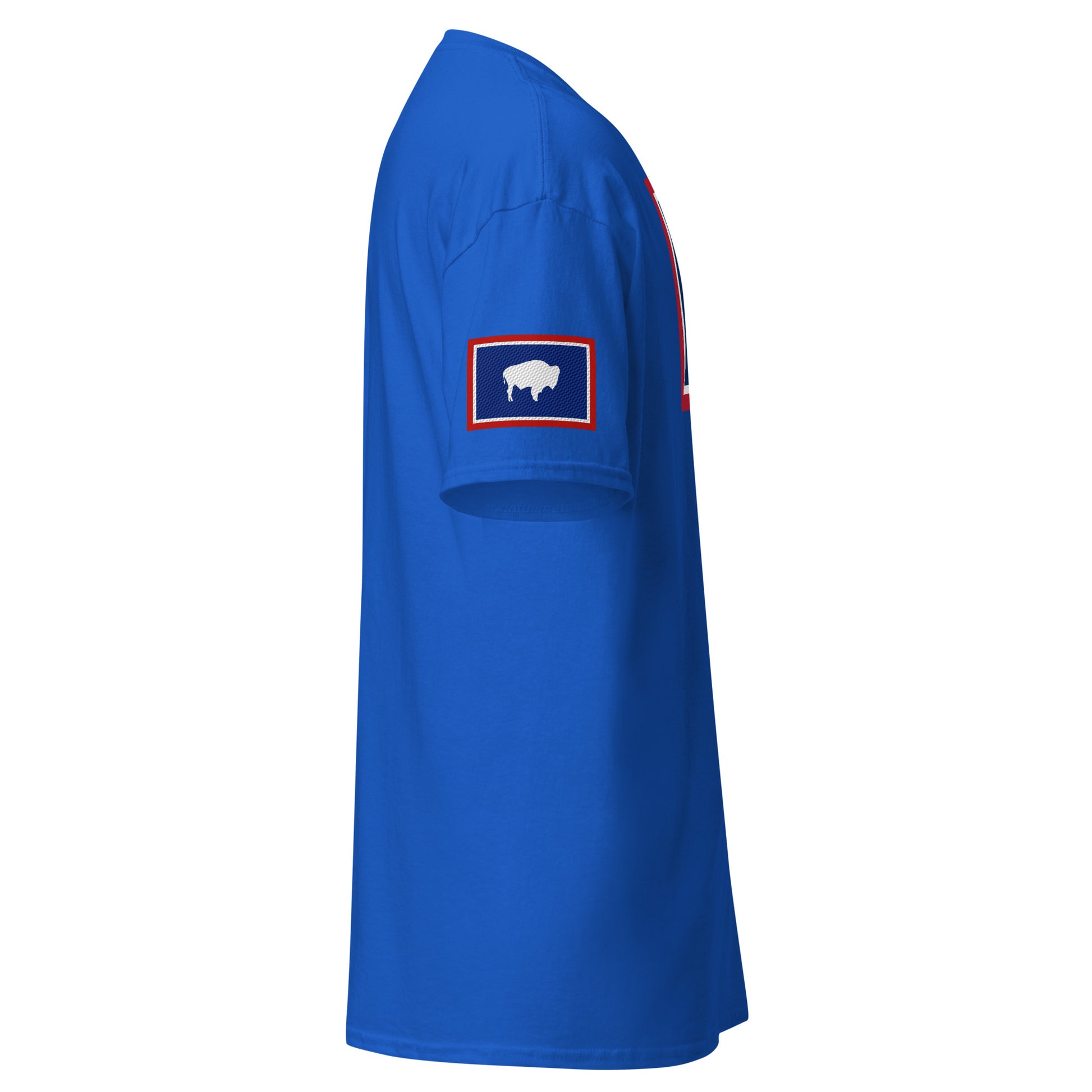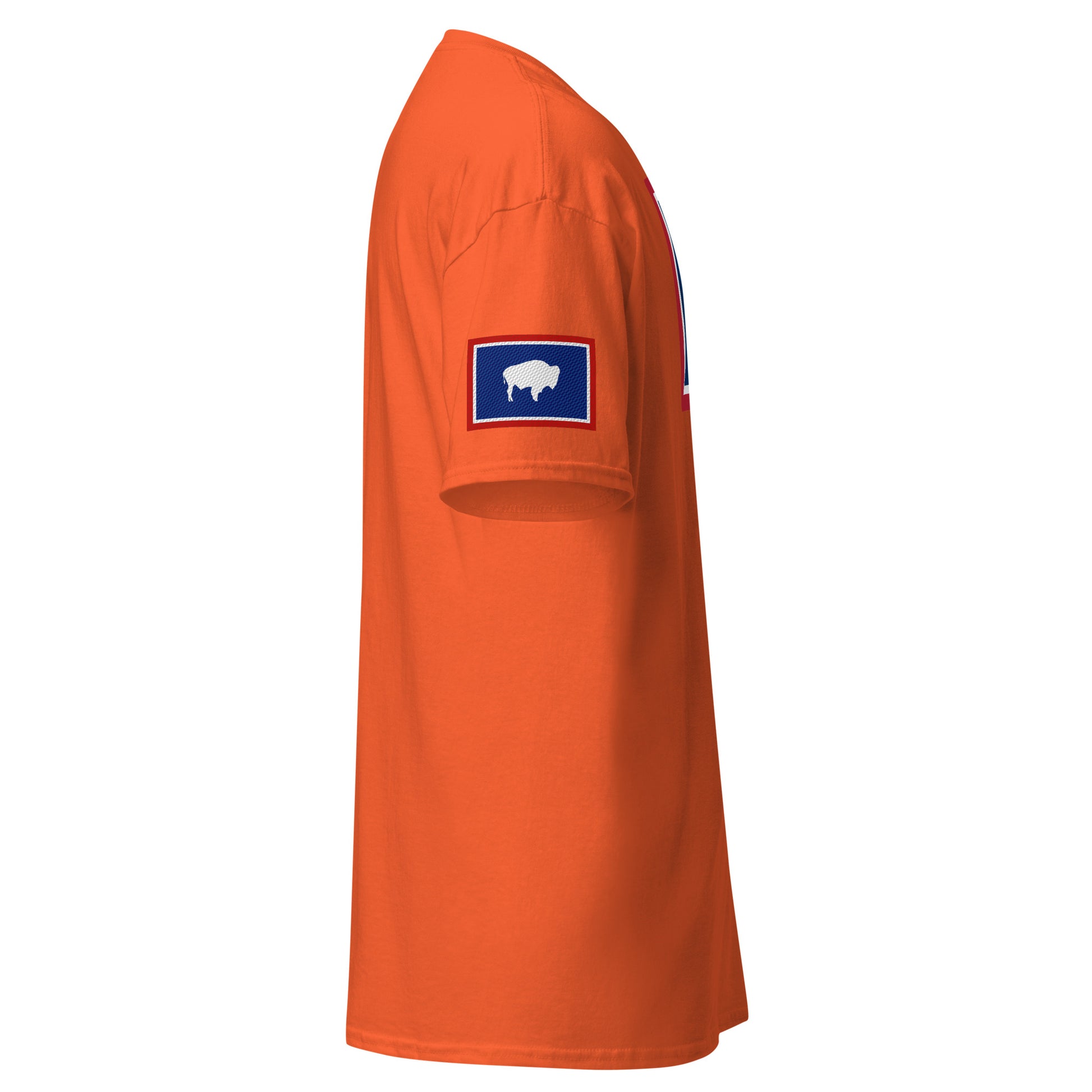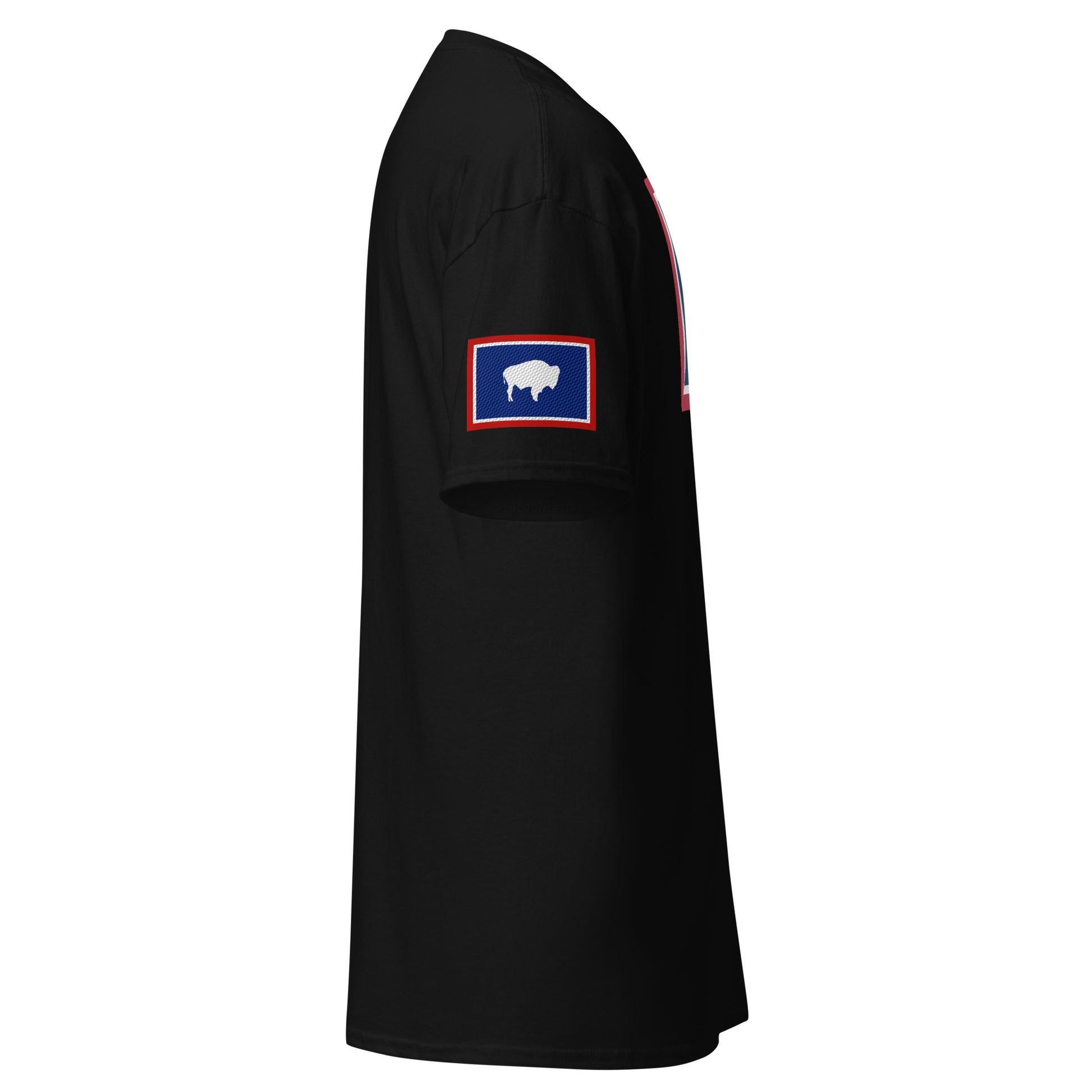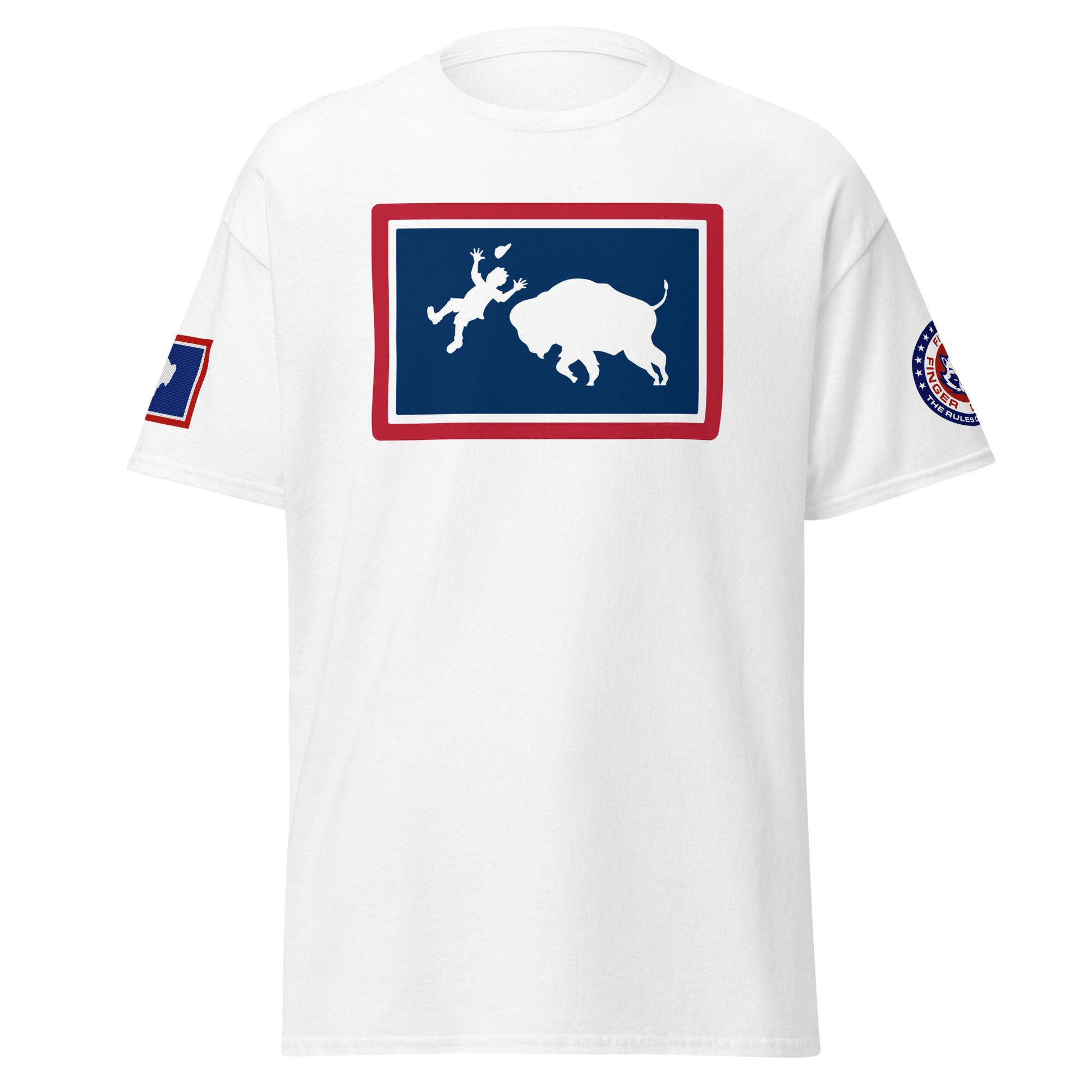 Welcome to Wonderful Wyoming! The wild life in Wyoming's State and National Parks are very docile so much so that these parks could be viewed as petting zoos! This design was inspired by the Wyoming State flag and interactions between tourists and Wyoming's wildlife. Get out your selfie sticks and start making content!