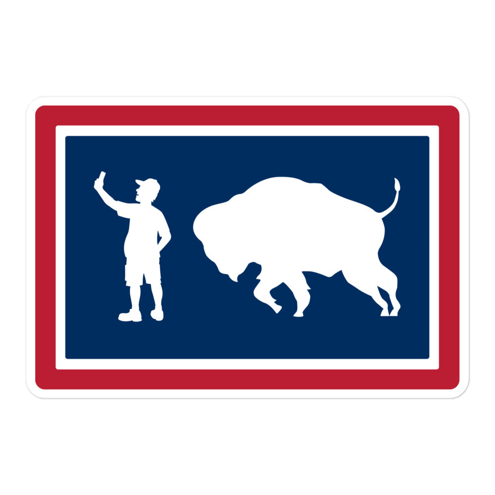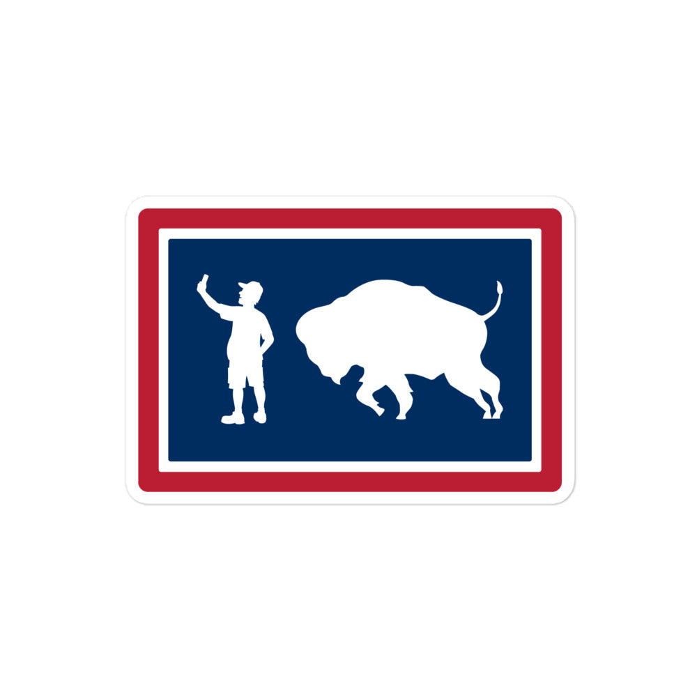I went to Yellowstone National Park attempted to pet the fluffy cow and ended up with a fine, hefty medical bills and this awesome Five Finger Discount sticker! You can avoid the fine and medicals bills and simply order it from us! The sticker features our twist on the Wyoming state flag with the buffalo charging an unsuspecting fella snapping a selfie!